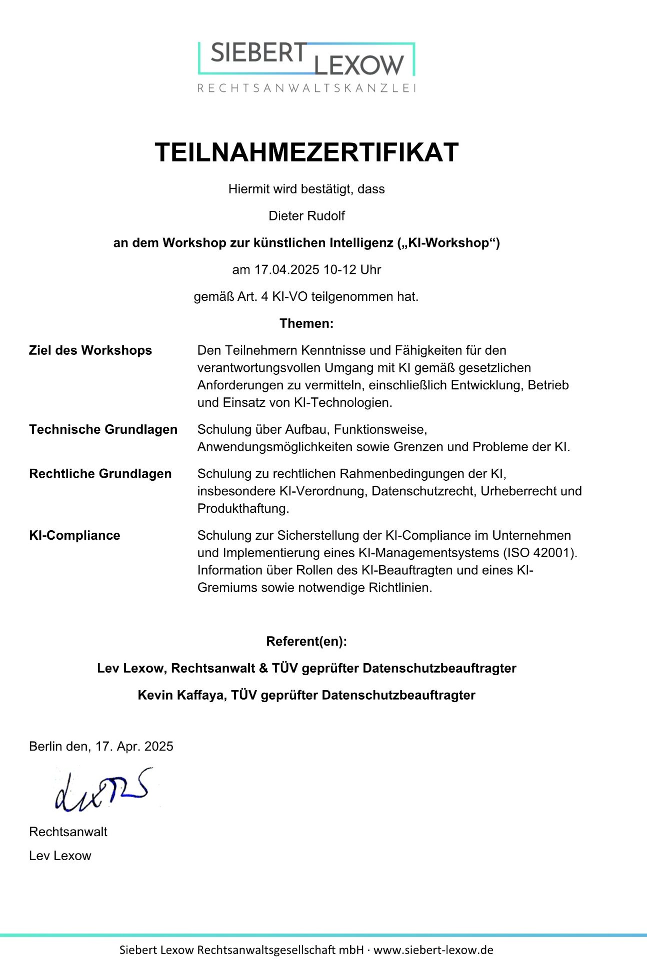 Dieter Rudolf, Dipl.-Ing.(FH)